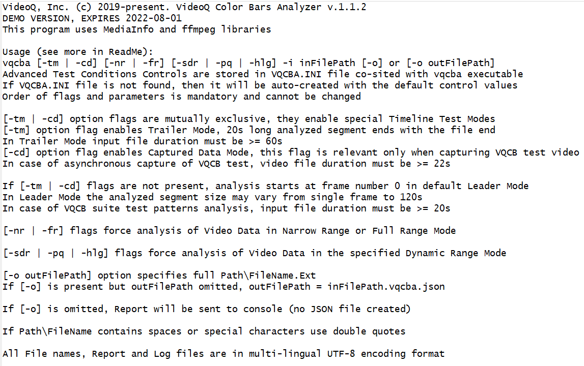 - VQCBA auto-detects and process 5 different types of color bars tests