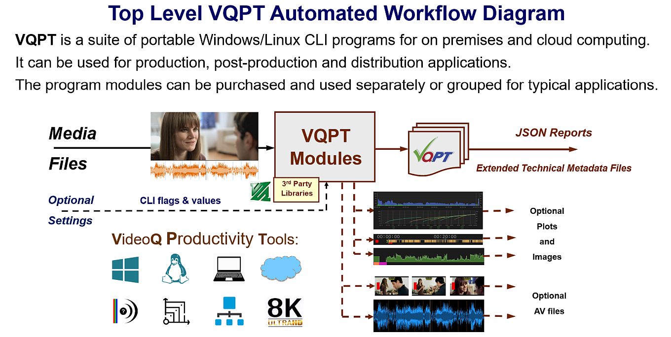 (all formats supported by FFMPEG) - VQPT modules produce machine-readable reports in JSON format